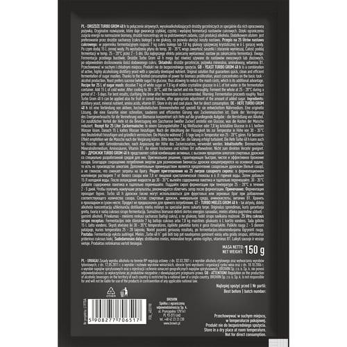 Drożdże przeznaczone są do szybkiej i czystej fermentacji. Pozwalają uzyskać do 19% w 2-7dni. Drożdże TURBO GROM 48h polecane są do nastawów cukrowych.