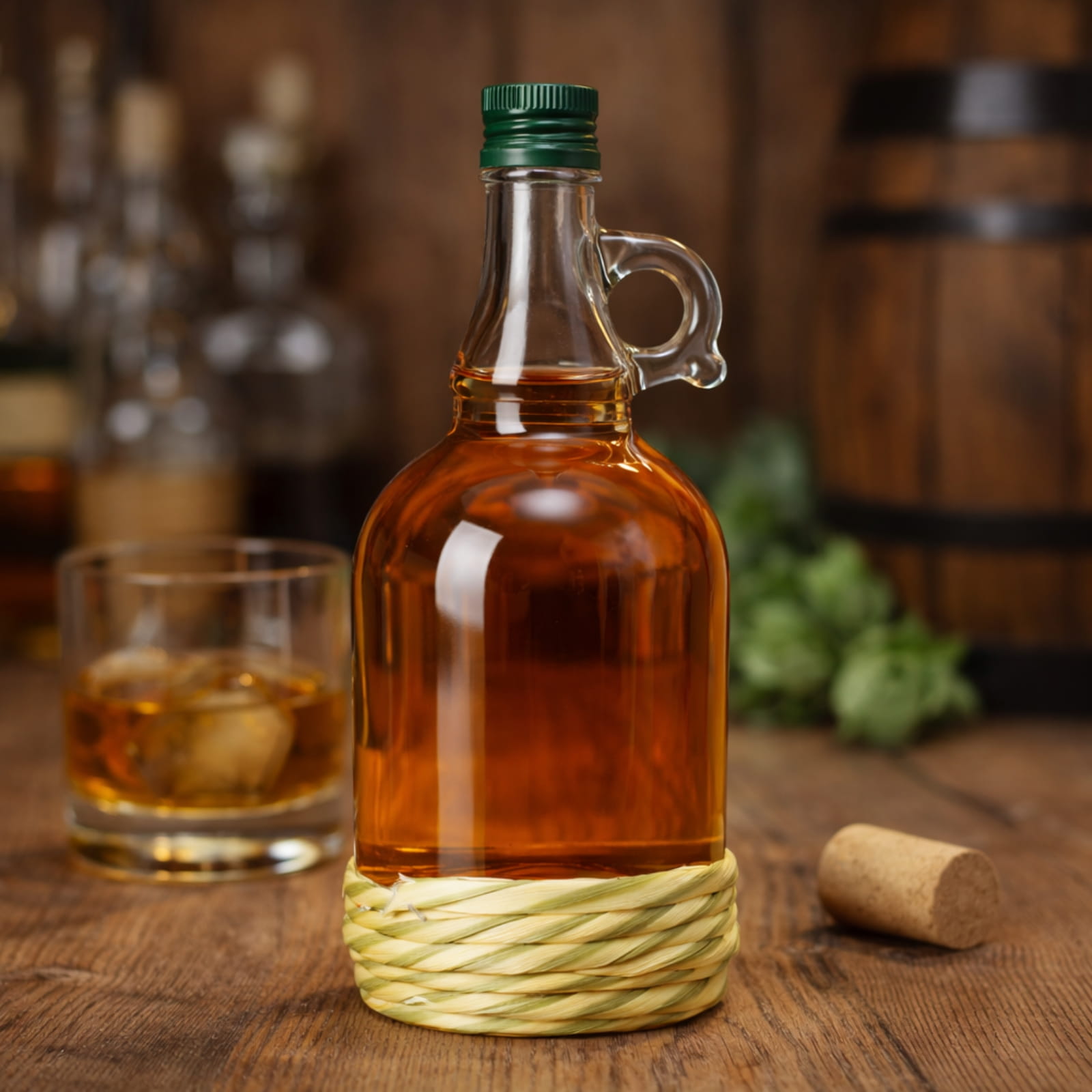 Galon, butelka na nalewki, bimber 0,5l z zakrętką w oplocie to ulubione naczynie domowych producentów alkoholi.