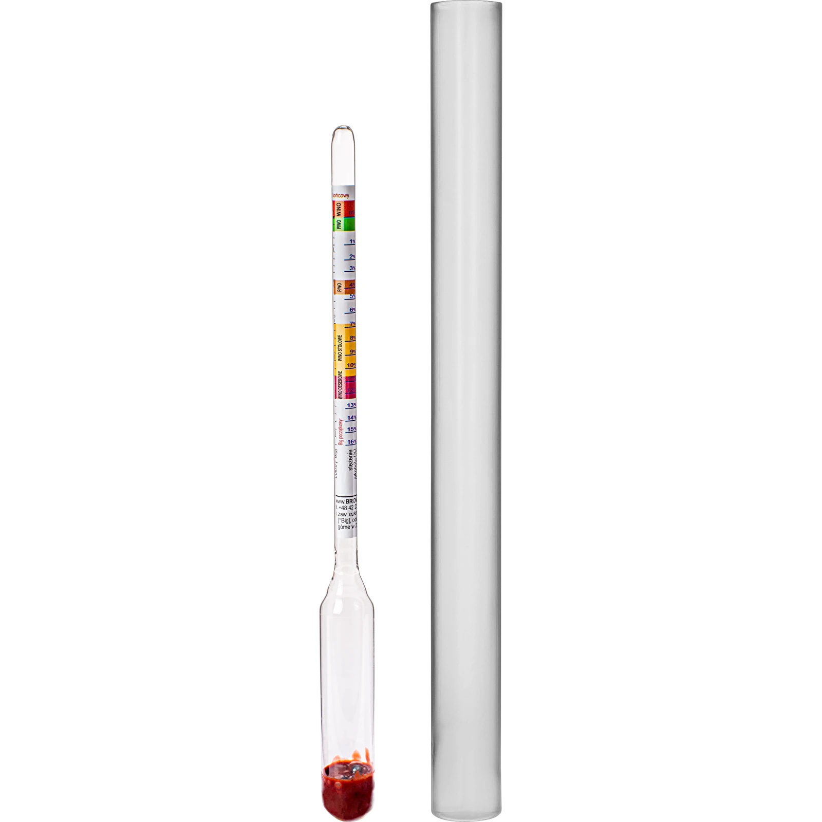 ma przygotowywany przez Ciebie moszcz lub brzeczka piwna w g\l oraz w stopniach Ballinga, a także zmierzysz potencjalną zawartość alkoholu w winie lub piwie. W zestawie ze szklaną menzurką, która jest niezbędnym elementem podczas wykonywania pomiaru. Instrukcja jest dołączona do zestawu.