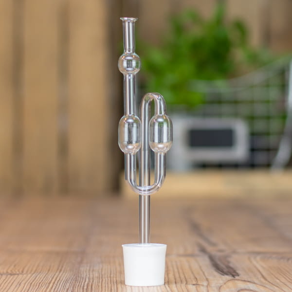 Rurkę wypełnić należy wodą, a ona zadba o to aby zabezpieczyć zawartości balonu przed natlenieniem oraz ciekawskimi szkodnikami - np. muszki owocówki, które wino wręcz ubóstwiają. Jednocześnie rurka umożliwia regularne wydobywanie się dwutlenku węgla powstającego podczas procesu fermentacji. Musisz zatem pamiętać o uzupełnianiu wody, ponieważ ona w sposób naturalny - wyparuje.