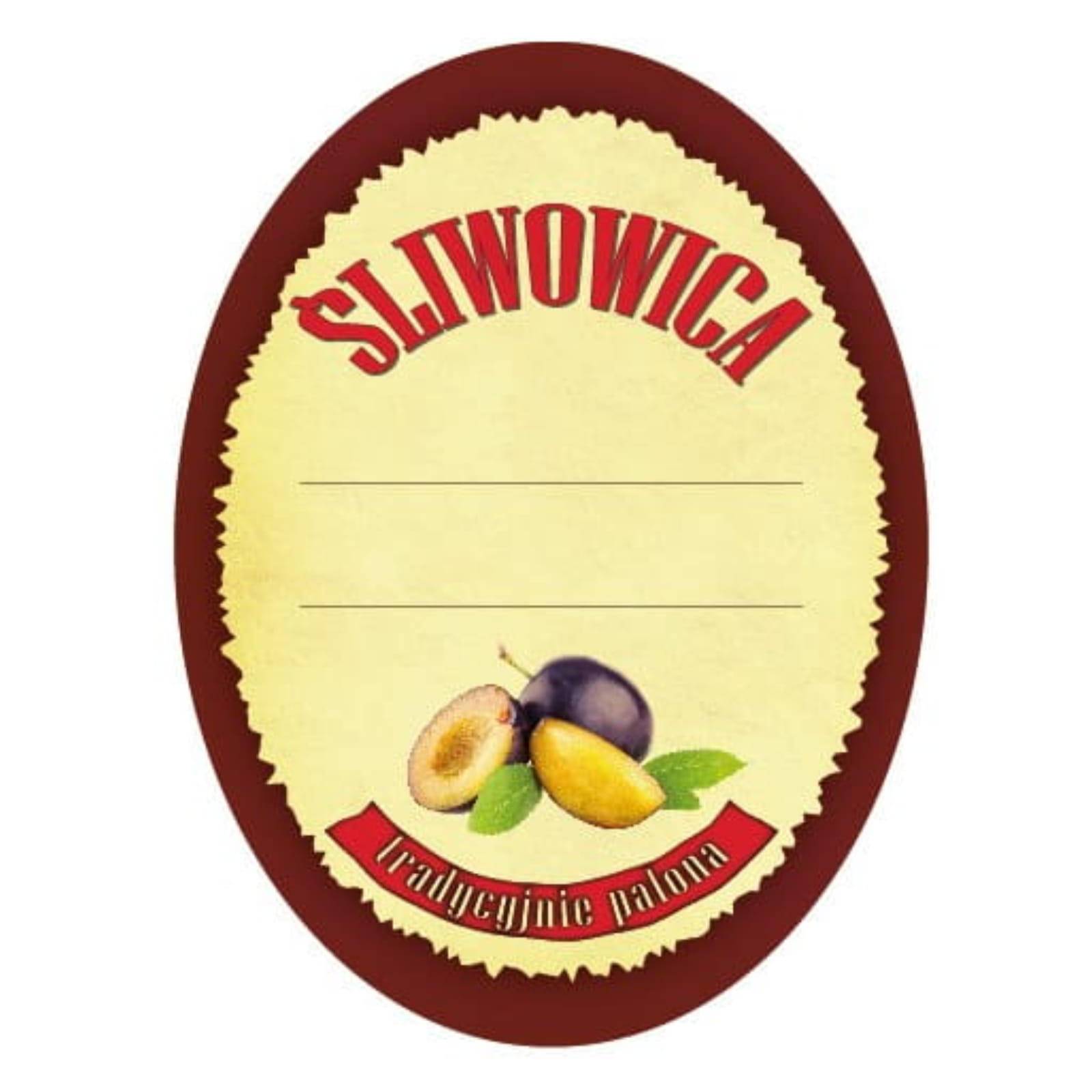 Etykieta na bimber śliwowica 60x80 owalna ŚLIWOWICA TRADYCYJNIE PALONA