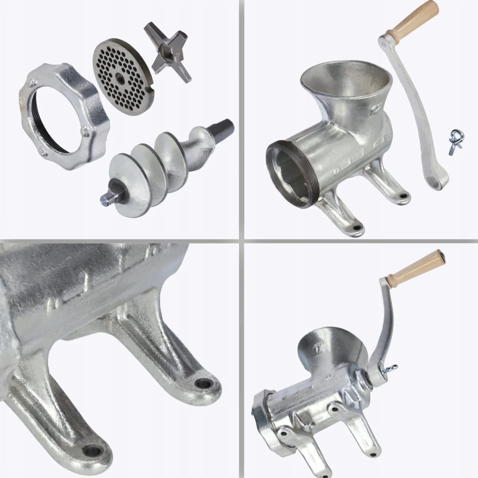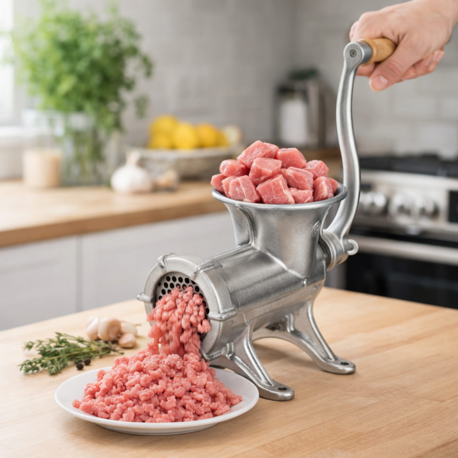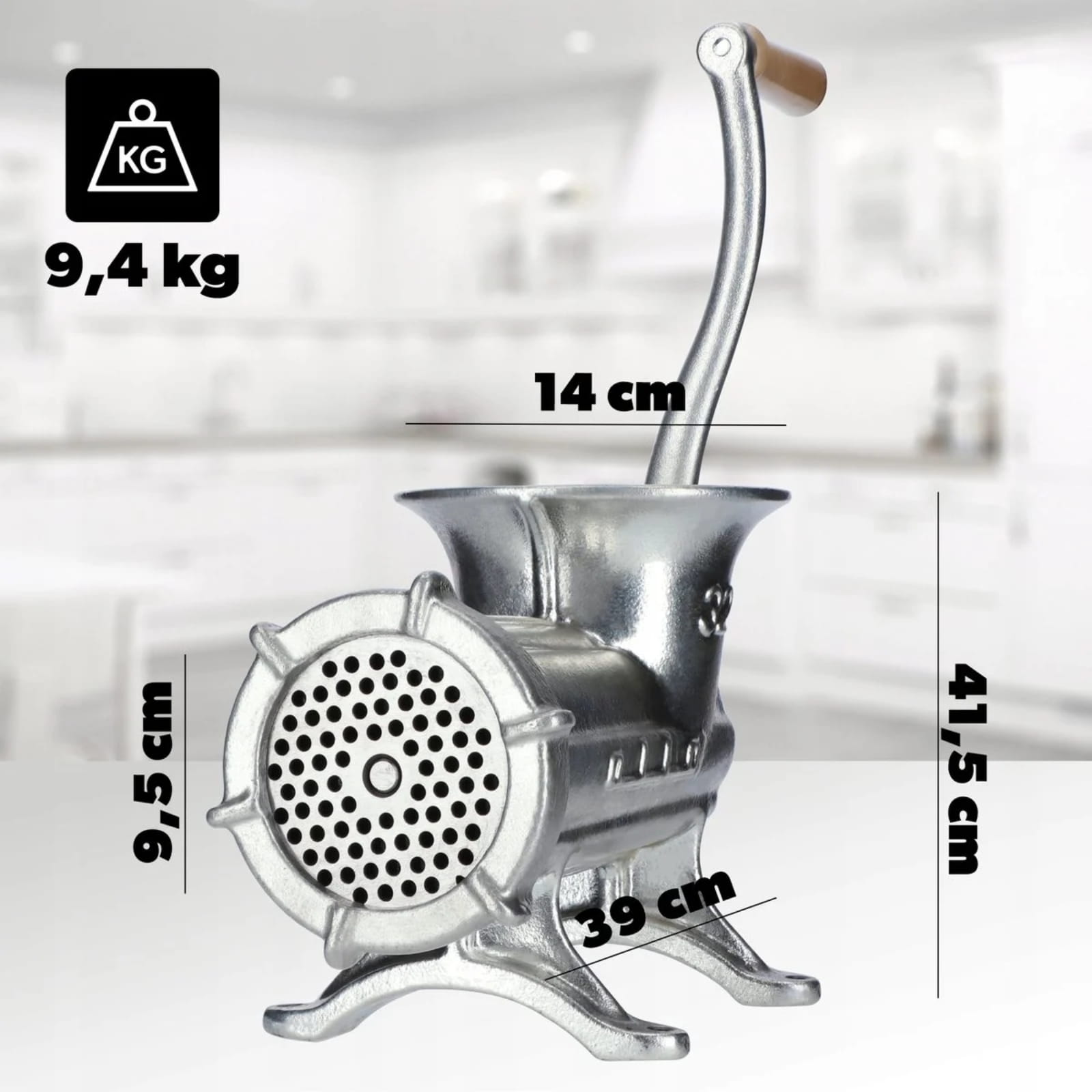 Ręczna maszynka Alfa to klasyczne rozwiązanie do domowej kuchni, szczególnie dla osób przygotowujących własne mielone mięso, farsze oraz domowe wyroby wędliniarskie. Żeliwny korpus zapewnia stabilność i odporność na intensywne użytkowanie, a ręczny mechanizm pozwala pracować w tempie dopasowanym do rodzaju surowca i własnej wygody.