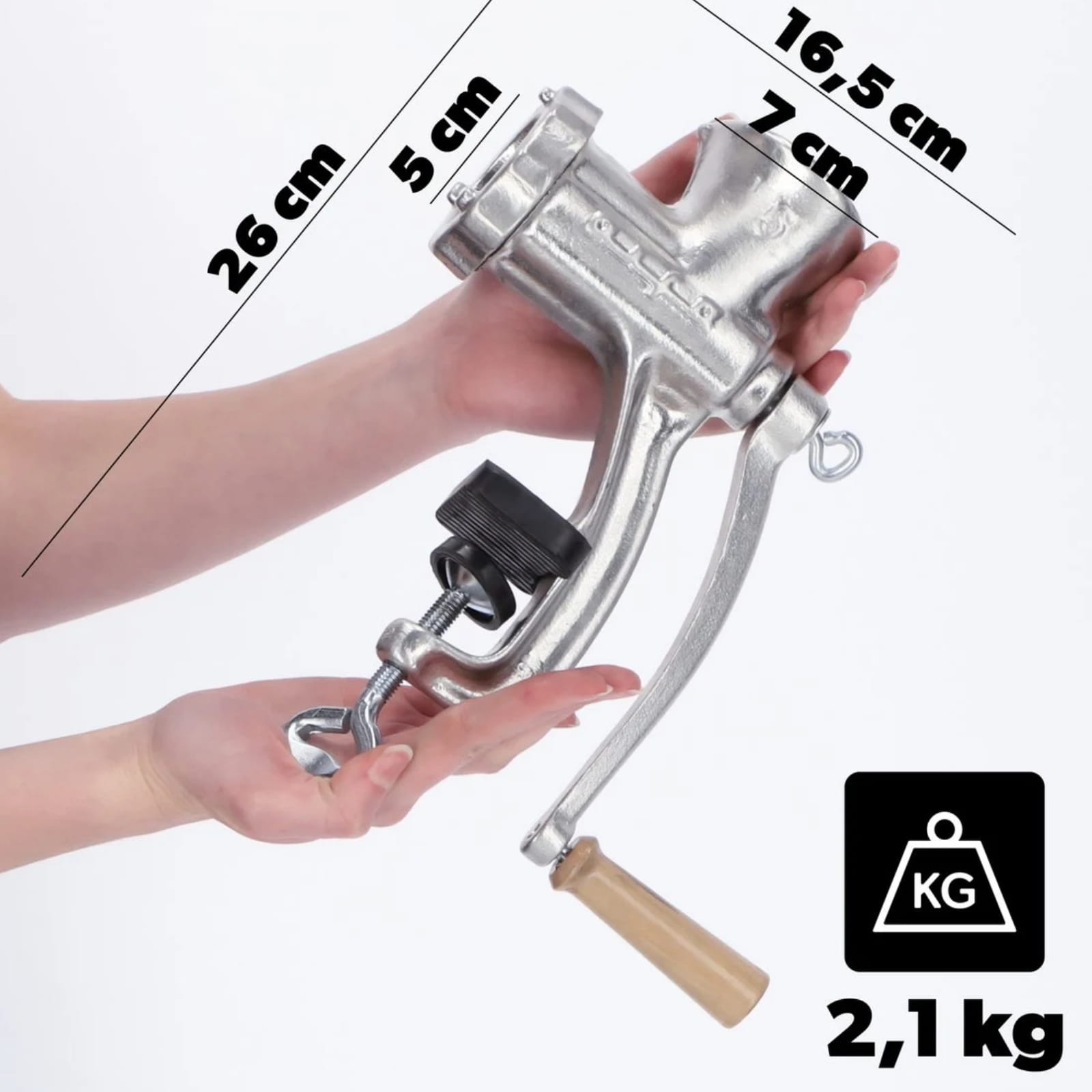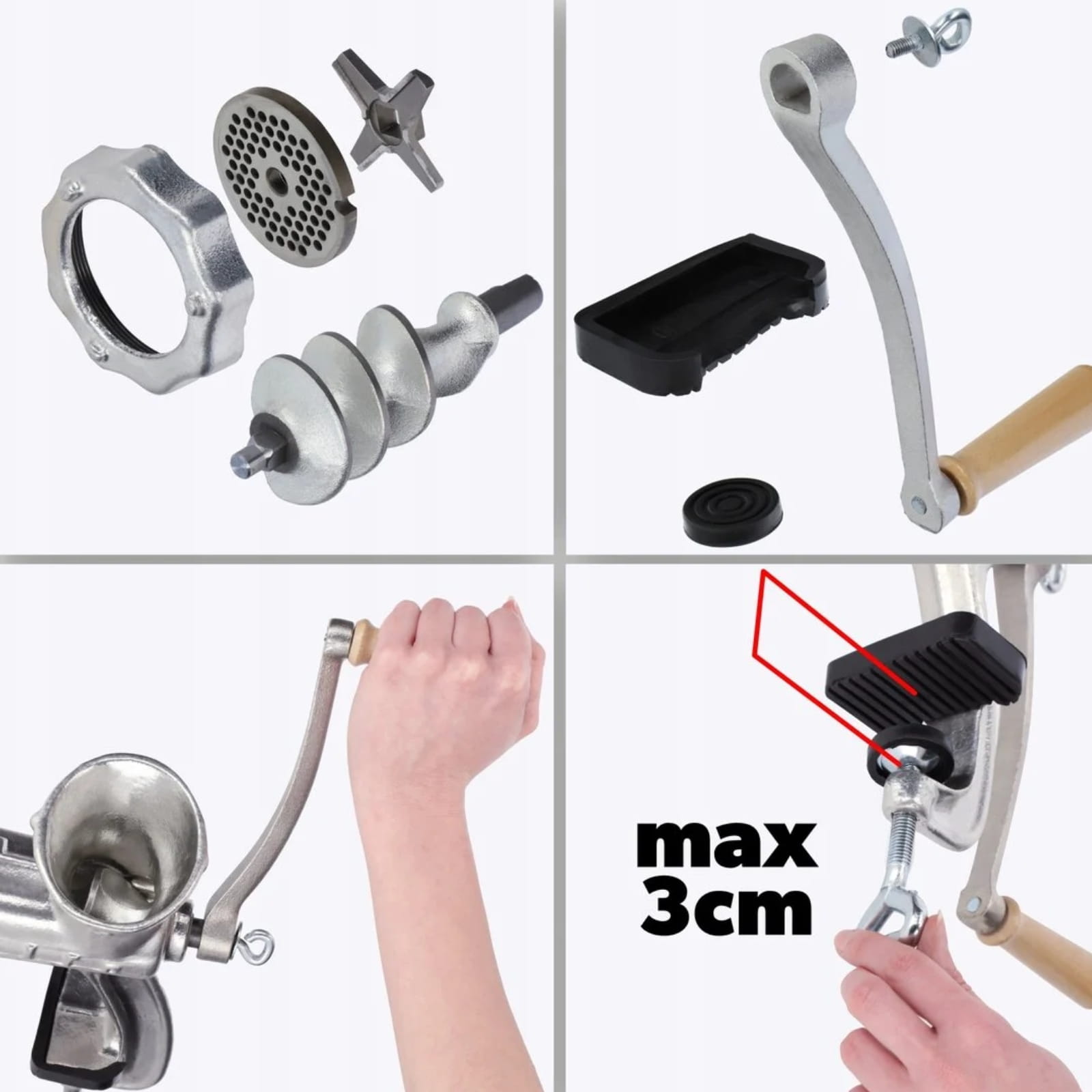 - Ręczny mechanizm pracy – większa kontrola podczas mielenia i nadziewania