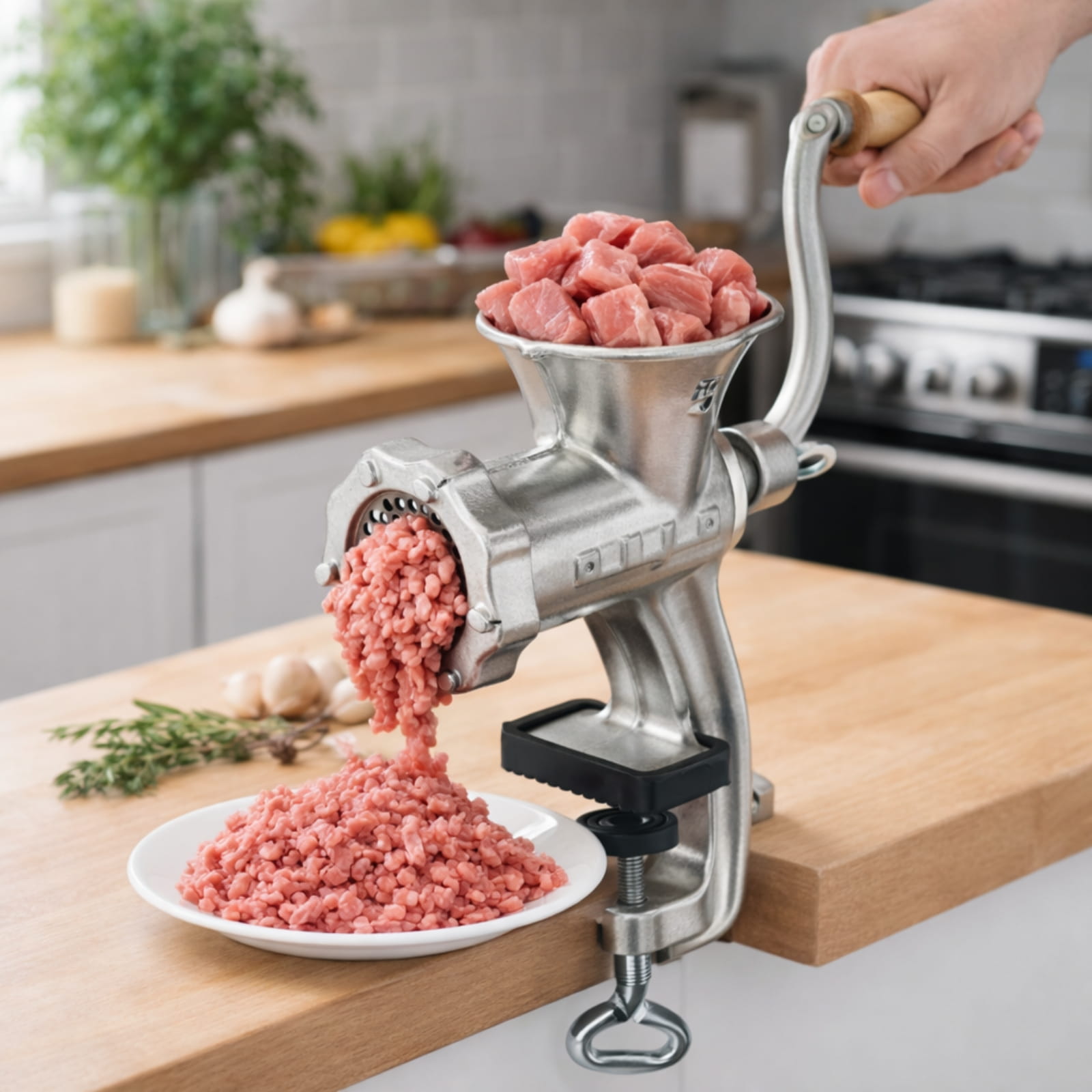 Ręczna maszynka Alfa to klasyczne rozwiązanie do domowej kuchni, szczególnie dla osób przygotowujących własne mielone mięso, farsze oraz domowe wyroby wędliniarskie. Żeliwny korpus zapewnia stabilność i odporność na intensywne użytkowanie, a ręczny mechanizm pozwala pracować w tempie dopasowanym do rodzaju surowca i własnej wygody.