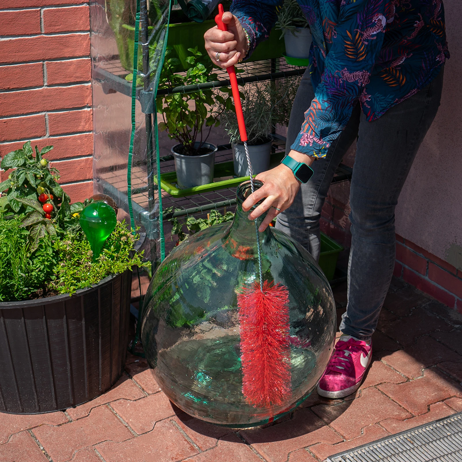 Dlatego szczotka jest nie zastąpionym pomocnikiem domowego winiarza. Szczotka ma specjalne wygięcie, które doskonale pasuje do zaokrąglonego kształtu i ułatwia wyczyszczenie balonu.