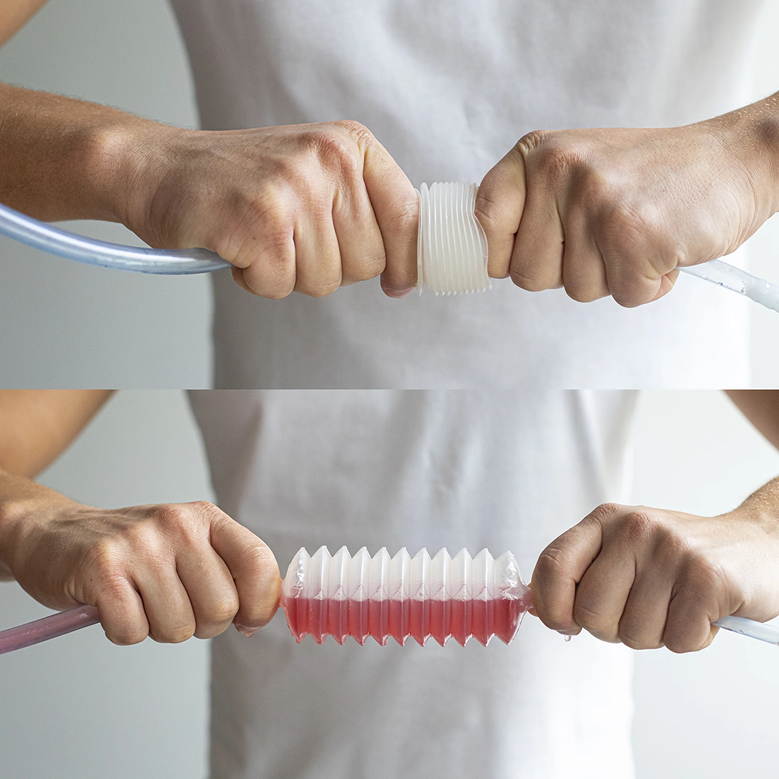 3. Ściśnij pompkę, zamknij zacisk, a następnie energicznym ruchem rozpręż pompkę